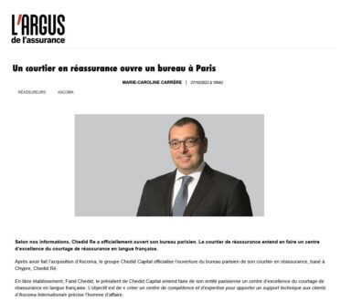 02 November 2022 - News release - Chedid Re, a member of Chedid Capital Holding, announced that its Paris